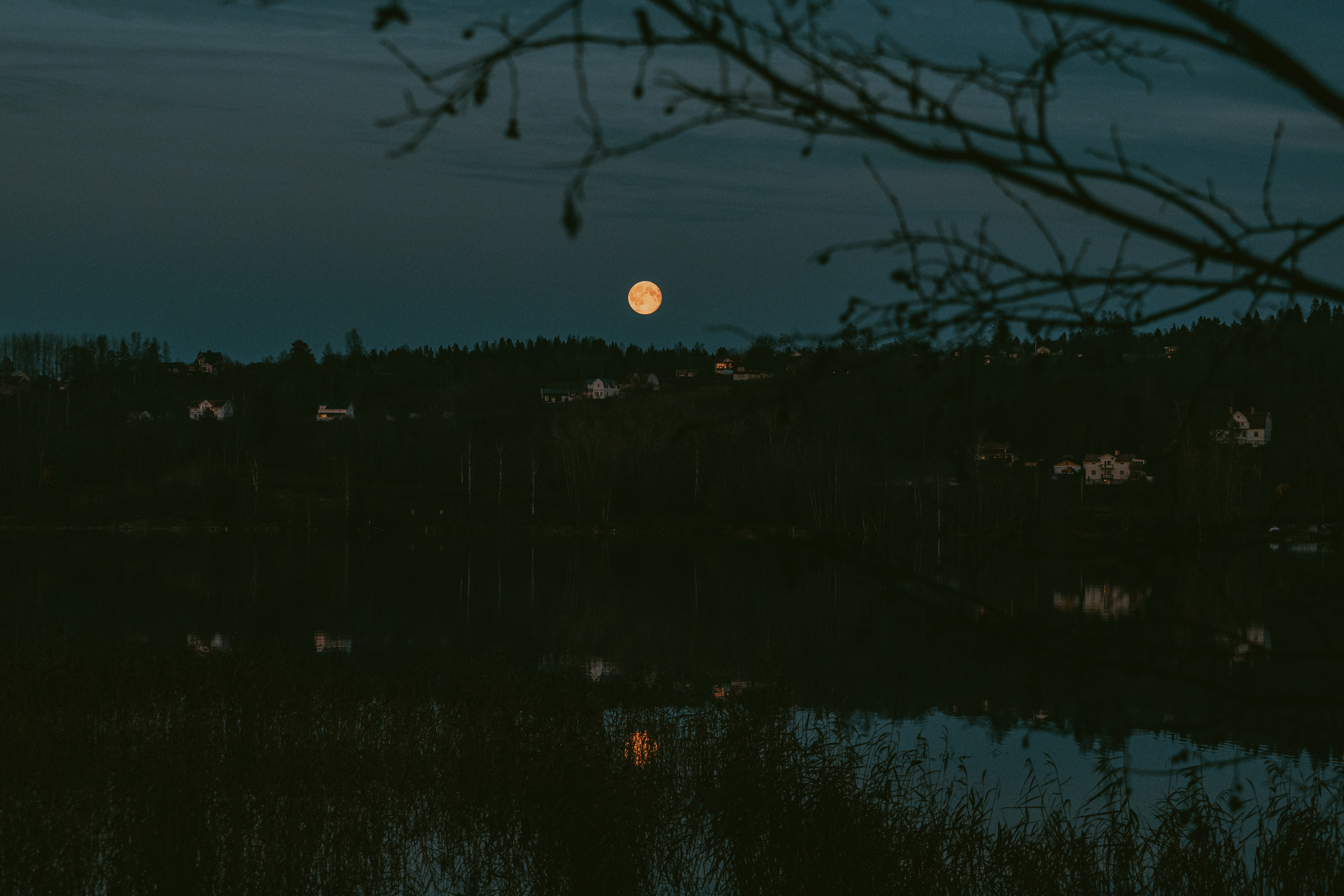 I am biking home after a photo shoot at a restaurant, and as I come over the hill and turn towards our neighbourhood, the moon, in all her beauty, is hanging big and orange in the sky. I pedal faster, rush inside to drop of my backpack full of groceries I had grabbed on the way. I put the 40-150 F2.8 on my camera, sling it over my shoulder and hop back on the bike.